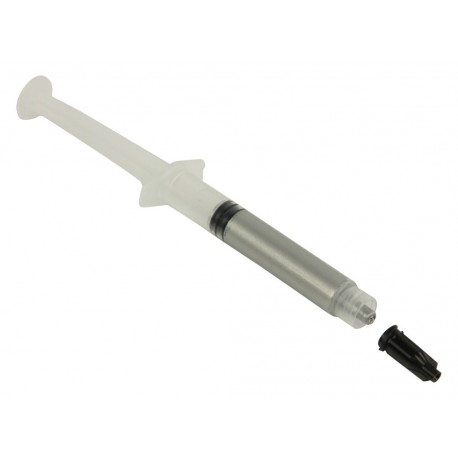Seringa de pasta térmica de alta efectividade de cor cinza que melhora a transferência efectiva de calor entre o processador e o dissipador.