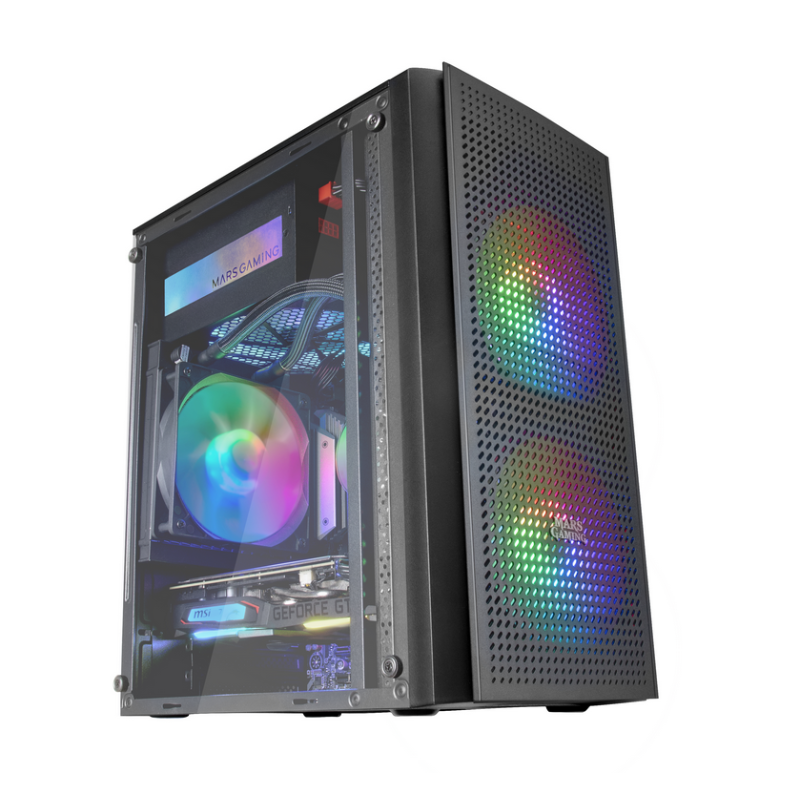 MARS GAMING MC300 MICRO-ATX CASE, 3X 120MM FRGB FAN, WINDOW, FRONT MESH, BLACK