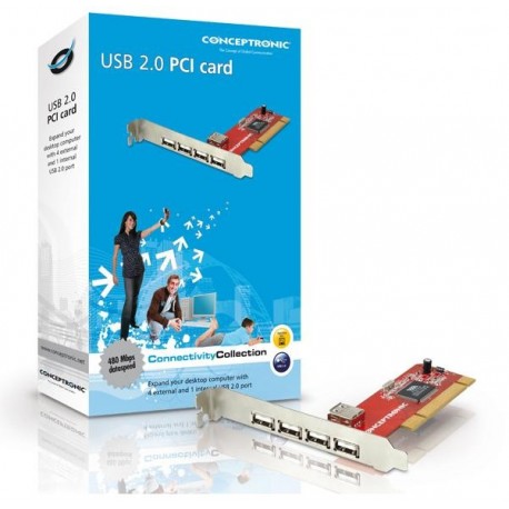 Controladora PCI de portas USB2.0. Disponibiliza 4 portas USB2.0. 3Portas Externas mais 1 porta interna. Desempenho a 33MHz a 32-bit. Compativel com sistemas de 32-bit e 64-bit.
